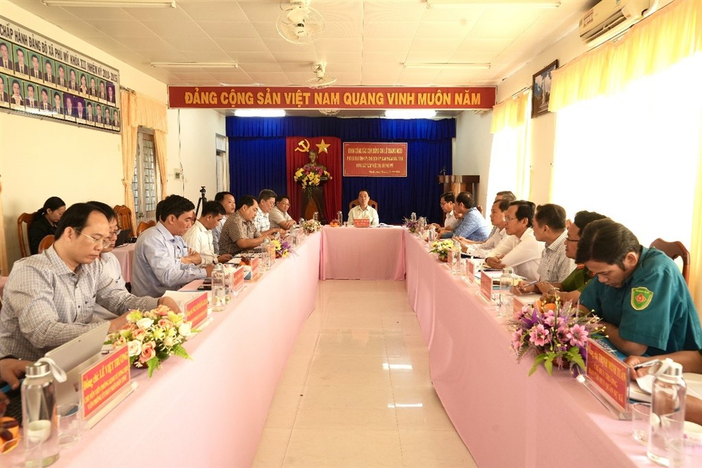 Trước đó, đoàn công tác đã đến dâng hương tại Nhà bia ghi danh liệt sĩ; khảo sát Di tích Khu căn cứ Tỉnh ủy tại Xẻo Đước (ấp Xẻo Đước) và kiểm tra cơ sở vật chất, tình hình dạy học tại Trường Mầm non Hoạ Mi (ấp Thọ Mai).