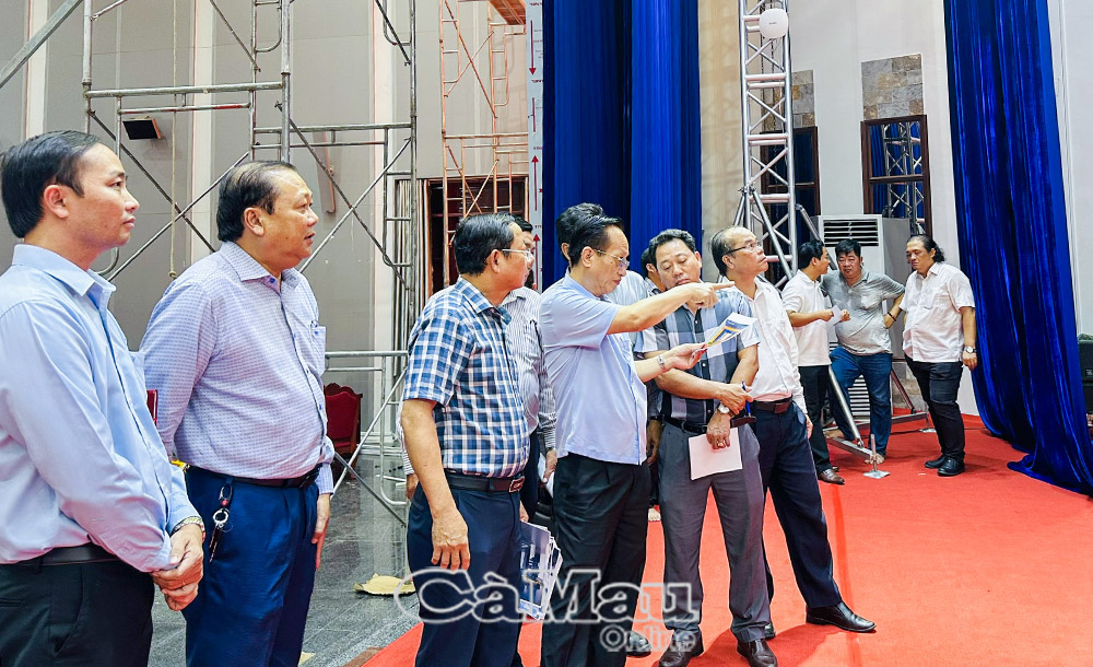 Chủ tịch HĐND tỉnh Phạm Văn Thiều và đoàn công tác đã kiểm tra khu vực hội trường chính, các phòng phục vụ Đại hội, cùng một số khu vực dự kiến trưng bày, triển lãm phục vụ sự kiện.