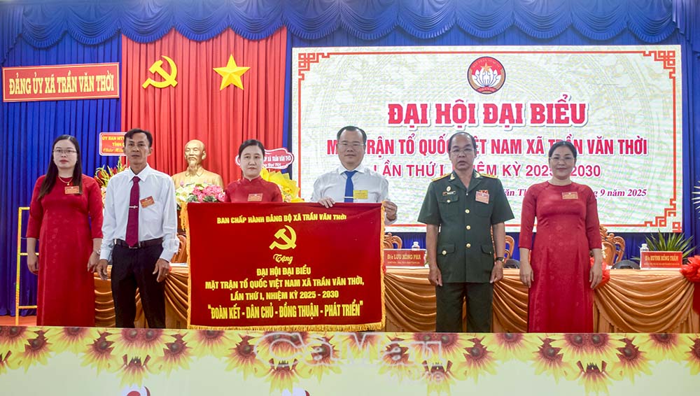 Ngày 27/9, xã Trần Văn Thời long trọng tổ chức Đại hội đại biểu Mặt trận Tổ quốc (MTTQ) Việt Nam lần thứ I, nhiệm kỳ 2025-2030. Dự và chỉ đạo Đại hội có đồng chí Lê Thanh Triều, Uỷ viên Ban Thường vụ Tỉnh uỷ, Phó Chủ tịch Thường trực Uỷ ban MTTQ Việt Nam tỉnh; đồng chí Nguyễn Thế Châu, Bí thư Đảng uỷ, Chủ tịch HĐND xã Trần Văn Thời.