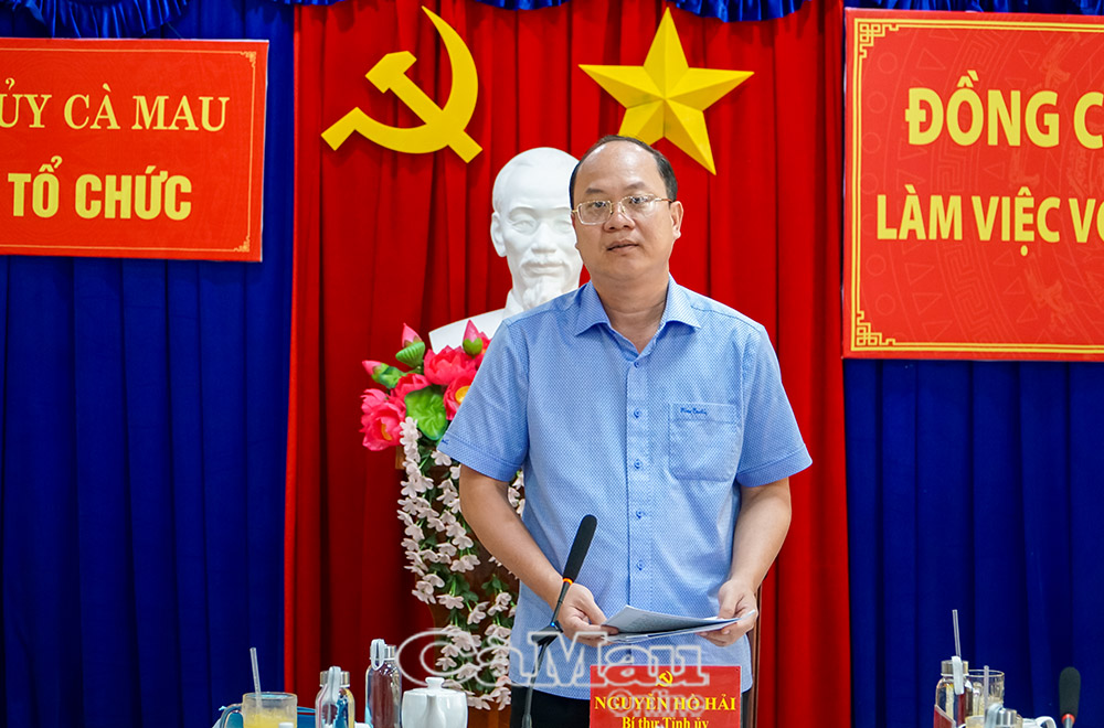 Bí thư Tỉnh uỷ Cà Mau Nguyễn Hồ Hải phát biểu quán triệt mục đích, yêu cầu buổi làm việc với Ban Tổ chức Tỉnh uỷ.