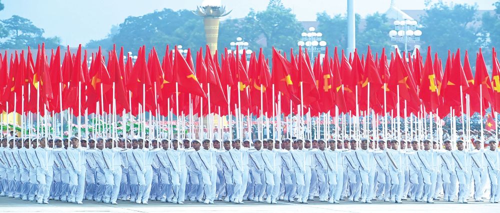 Khối Cờ Đảng, Cờ Tổ quốc tại lễ diễu binh, diễu hành kỷ niệm 80 năm Cách mạng tháng Tám thành công và Quốc khánh 2/9.