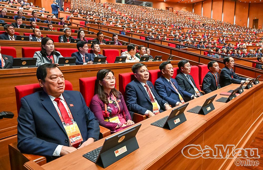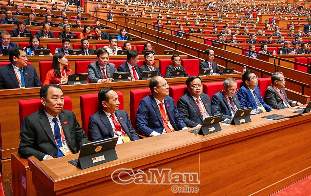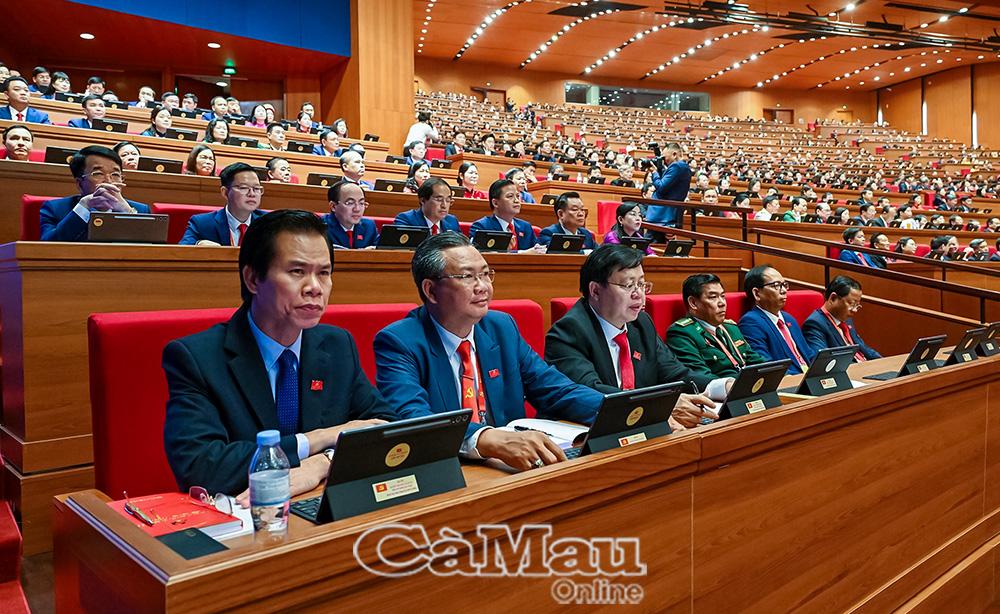 Đoàn đại biểu Đảng bộ tỉnh Cà Mau dự phiên thảo luận tại hội trường về các Văn kiện Đại hội.
