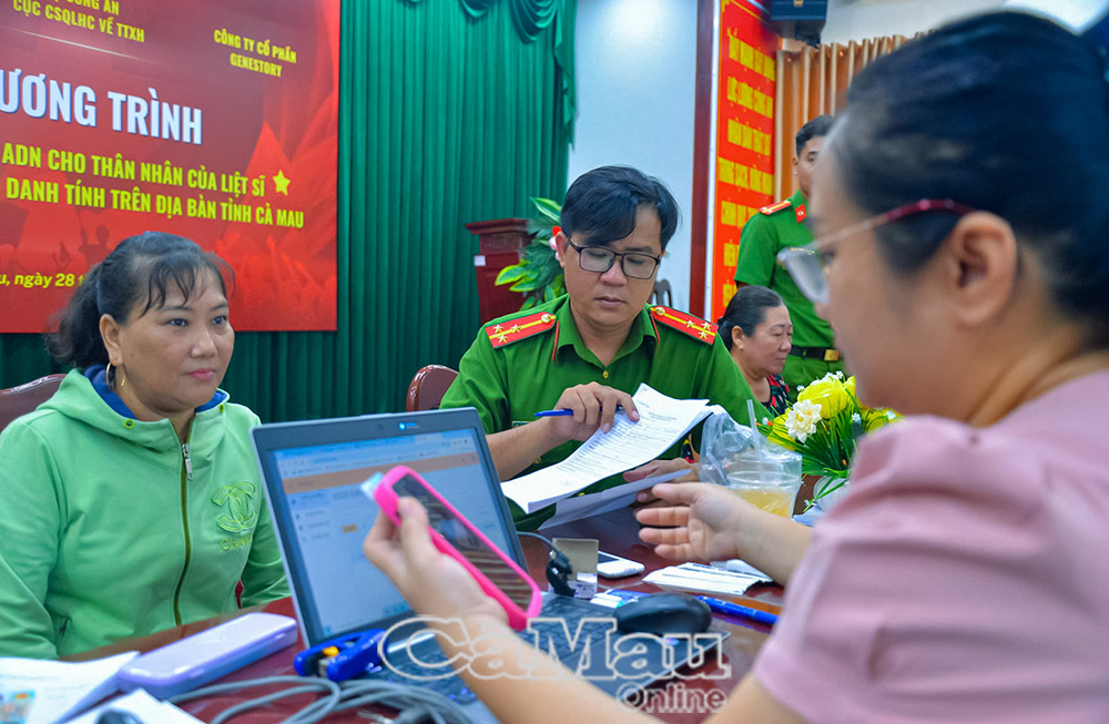 "Sau hợp nhất, tỉnh Cà Mau có tổng số liệt sĩ do địa phương đã thu thập, cập nhật thông tin vào Cơ sở dữ liệu Quốc gia về dân cư là 20.695 liệt sĩ. Trong đó có 4.366 liệt sĩ chưa rõ danh tính. Theo quy trình, Công an tỉnh phải thu thập thông tin cho 8.732 thân nhân họ ngoại để phục vụ thu thập và đối chiếu mẫu ADN với hài cốt của các liệt sĩ. Đến nay, đã thu thập đầy đủ thông tin cho 3.652/8.732 trường hợp là thân nhân họ ngoại, đạt 41,82%, còn lại 5.080 trường hợp chưa thể thu thập thông tin."