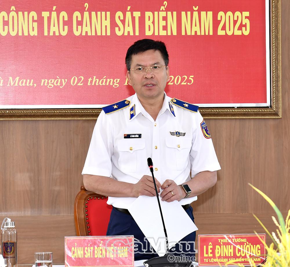 Thiếu tướng Lê Đình Cường, Phó Bí thư Đảng uỷ, Tư lệnh Cảnh sát biển Việt Nam, phát biểu chỉ đạo tại hội nghị.