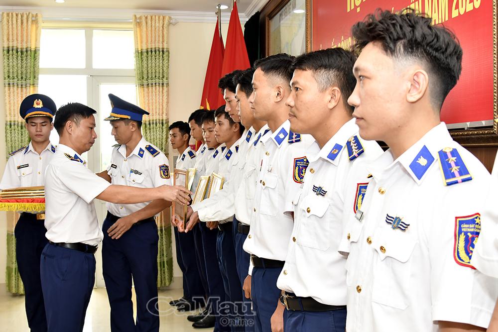 Trung tá Trương Văn Nhung, Chính trị viên Đoàn, trao danh hiệu Chiến sĩ thi đua và Chiến sĩ tiên tiến cho các cá nhân.