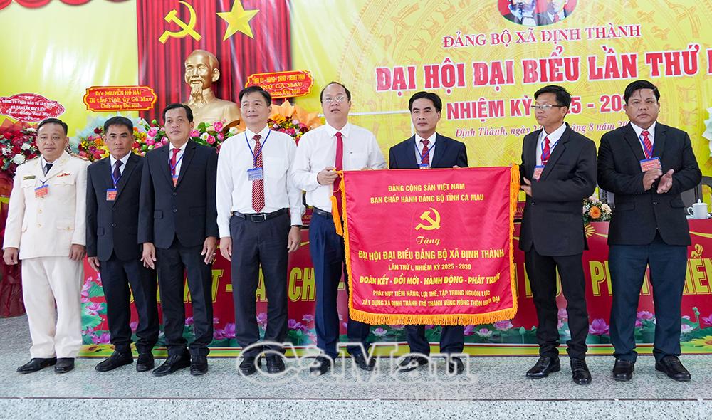 Thay mặt Ban Chấp hành Đảng bộ tỉnh, đồng chí Nguyễn Hồ Hải, Bí thư Tỉnh uỷ đã trao tặng đại hội bức trướng với dòng chữ “Đoàn kết - Đổi mới - Hành động - Phát triển, phát huy tiềm năng, lợi thế, tập trung nguồn lực xây dựng xã Định Thành trở thành vùng nông thôn hiện đại”.