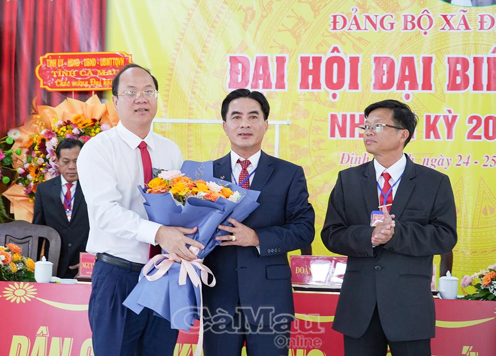 Bí thư Tỉnh uỷ Nguyễn Hồ Hải trao tặng đại hội bức trướng với dòng chữ: “Đoàn kết - Đổi mới - Hành động - Phát triển, phát huy tiềm năng, lợi thế, tập trung nguồn lực xây dựng xã Định Thành trở thành vùng nông thôn hiện đại".