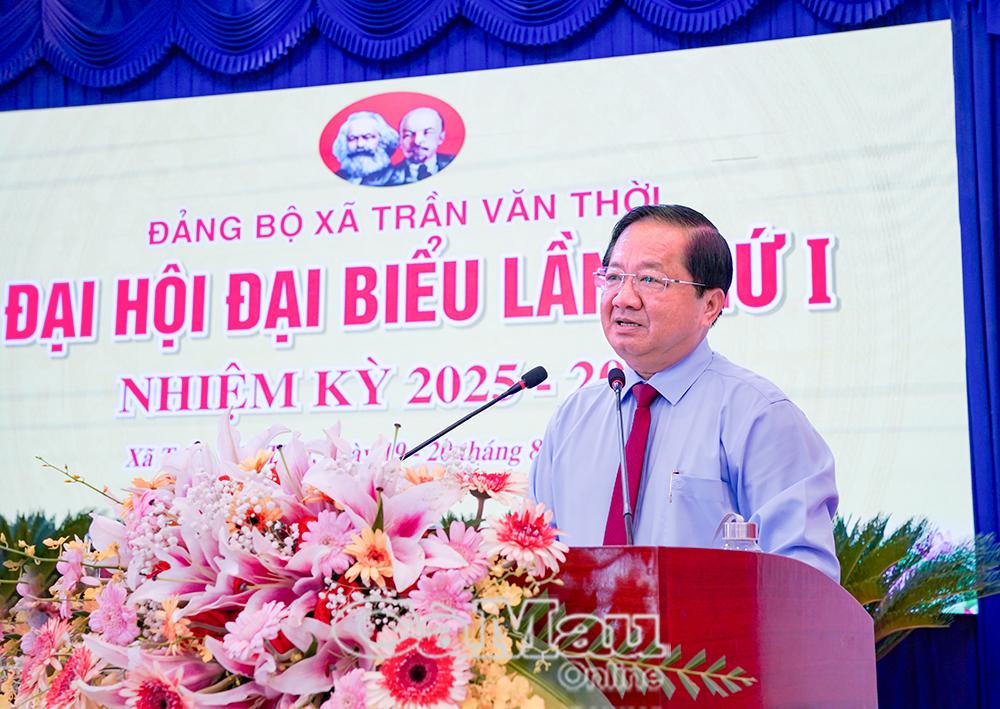 Phát biểu chỉ đạo, đồng chí Lê Thanh Triều, Ủy viên Ban Thường vụ Tỉnh uỷ, Phó Chủ tịch thường trực Uỷ ban MTTQ Việt Nam tỉnh Cà Mau, nhấn mạnh, đây không chỉ là đại hội của một nhiệm kỳ mới mà còn là dấu mốc quan trọng, mở đầu cho chặng đường phát triển của địa phương sau hợp nhất. Đồng chí đề nghị Đảng bộ xã tiếp tục phát huy tinh thần đoàn kết, khai thác lợi thế địa bàn rộng, dân số đông và truyền thống anh hùng, xây dựng xã trở thành điểm sáng trong phong trào xây dựng nông thôn mới nâng cao, đồng thời không ngừng củng cố, xây dựng Đảng bộ trong sạch, vững mạnh.
