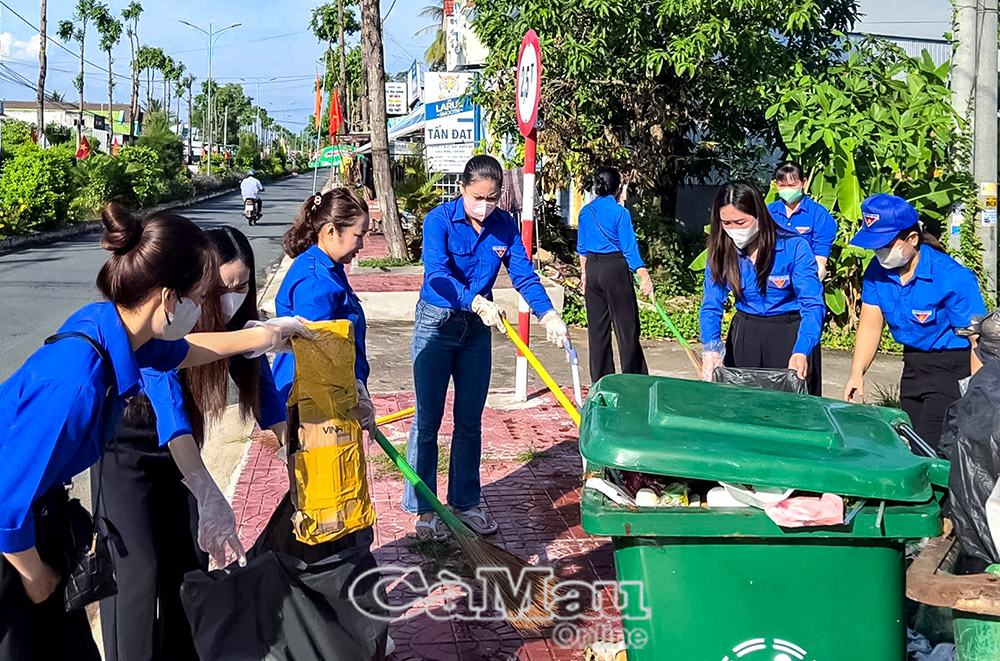 Tuổi trẻ xã Thới Bình thường xuyên ra quân làm đẹp cảnh quan, tạo khí thế thi đua sôi nổi để đưa nghị quyết vào đời sống.