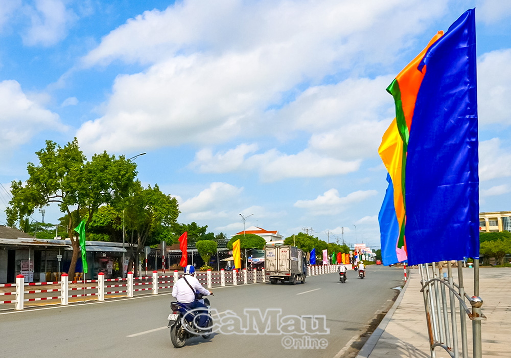 Nhiều tuyến đường nội đô tỉnh Cà Mau rực rỡ cờ hoa, tạo sinh khí phấn khởi chào mừng Đại hội Đại biểu toàn quốc lần thứ XIV của Đảng.