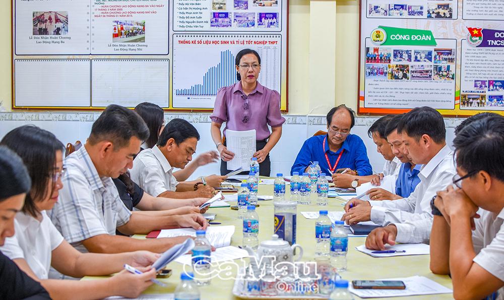 Đoàn đến làm việc tại Trường Tiểu học Phan Ngọc Hiển và Trường THPT Hồ Thị Kỷ. Tại mỗi điểm đến, lãnh đạo nhà trường báo cáo tình hình hoạt động năm học 2024-2025, kế hoạch năm học 2025-2026; cơ sở vật chất, đội ngũ giáo viên, học sinh; việc triển khai Chương trình giáo dục phổ thông mới; công tác xây dựng trường đạt chuẩn quốc gia; hoạt động dạy thêm, học thêm theo quy định; cùng những khó khăn, vướng mắc trong quá trình thực hiện nhiệm vụ.