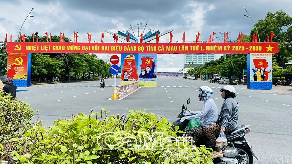 Những ngày này, khu vực Trung tâm Hội nghị tỉnh Cà Mau rực rỡ sắc cờ, sắc hoa, tràn ngập không khí phấn khởi chào mừng Đại hội. Hệ thống pa-nô, băng rôn, khẩu hiệu tuyên truyền được thiết kế công phu, kết hợp hài hòa cùng các dãy cờ hồng kỳ, cây cảnh tạo nên trục dẫn ấn tượng từ cổng chào đến khu vực hội trường chính. Toàn bộ cảnh quan được trang trí trang trọng, chỉn chu, vừa uy nghiêm, vừa gần gũi, thể hiện tinh thần đoàn kết, quyết tâm và kỳ vọng của toàn Đảng, toàn dân trước thềm Đại hội.