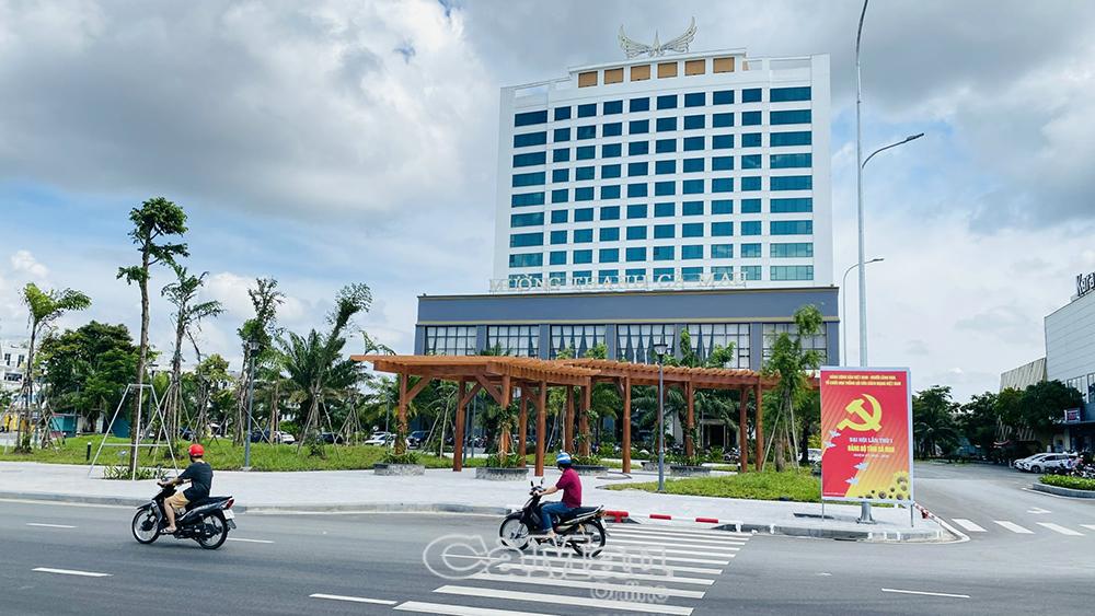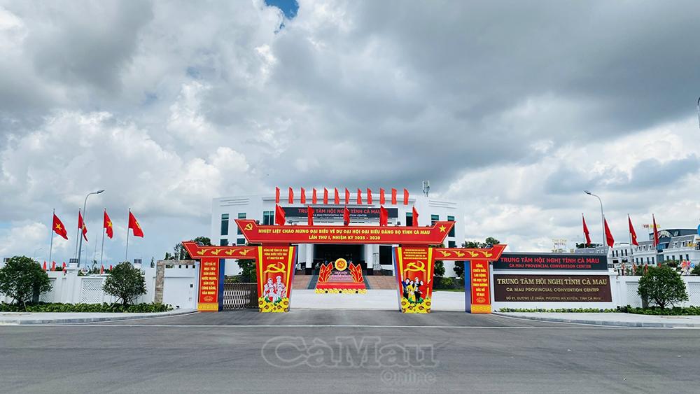 Quang cảnh bên ngoài Trung tâm Hội nghị tỉnh Cà Mau, nơi diễn ra Đại hội.
