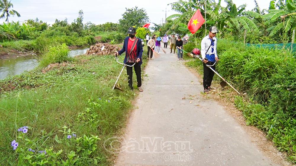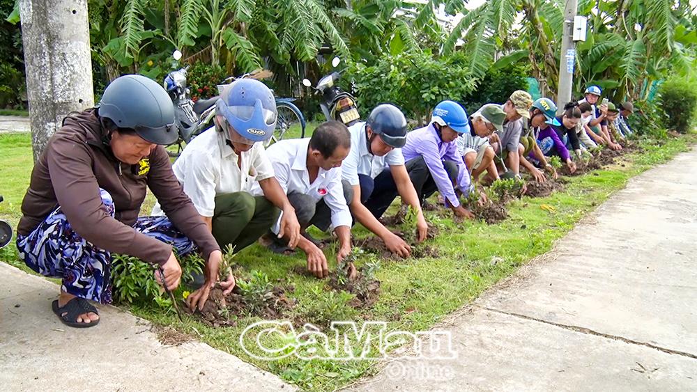 Đoàn viên, hội viên các ấp cùng với người dân tổ chức ra quân phát hoang bụi rậm và trồng hoa kiểng các tuyến đường trên địa bàn xã Đông Hải.