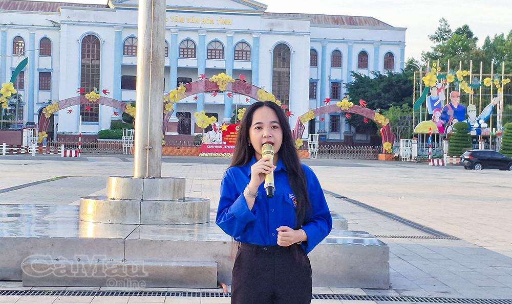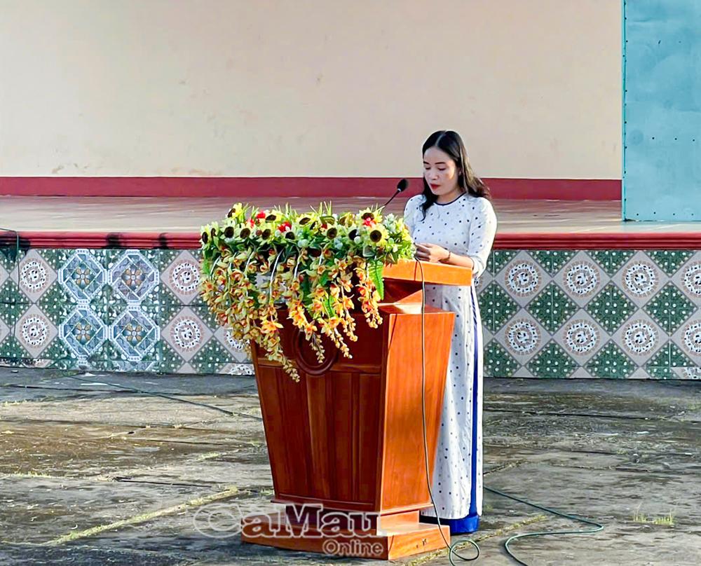 Đoàn viên Lâm Huỳnh Nguyên Thảo kể mẫu chuyện mang tên “Chiếc đồng hồ” tại buổi lễ chào cờ đầu tháng 10.