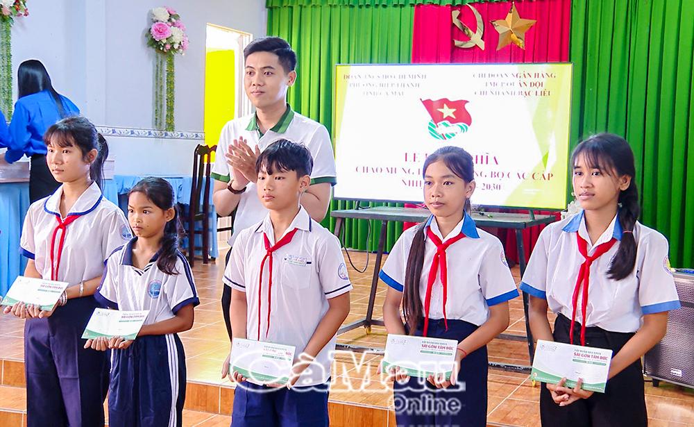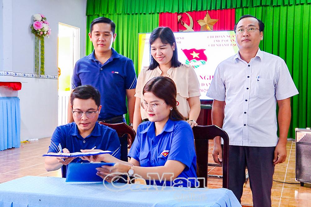 Chi đoàn MB Bạc Liêu trao tặng công trình thanh niên “Đường cờ Tổ quốc” trị giá 15 triệu đồng cho Đoàn phường Hiệp Thành.