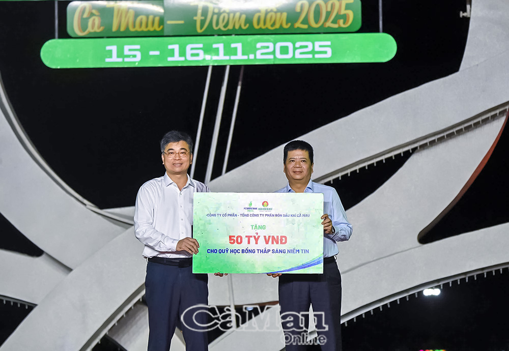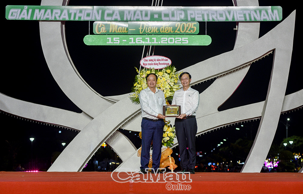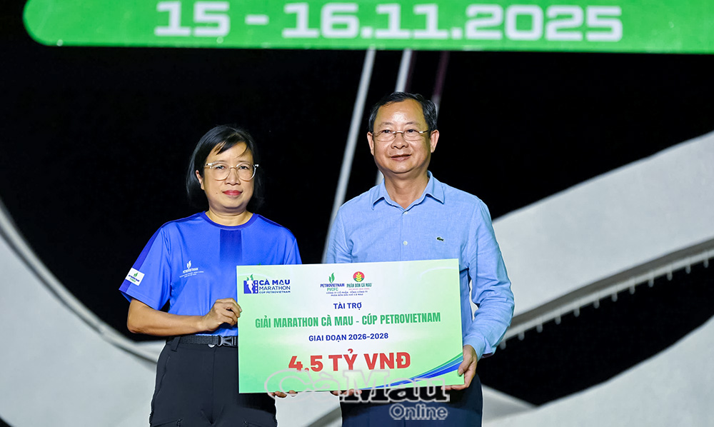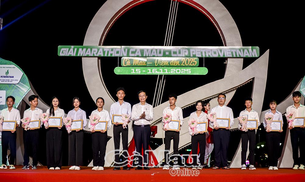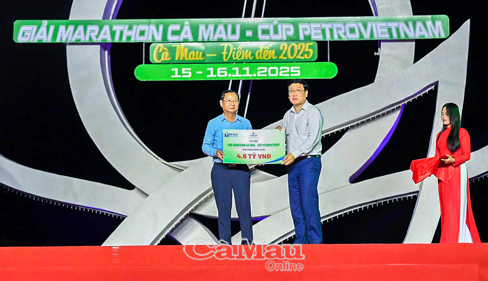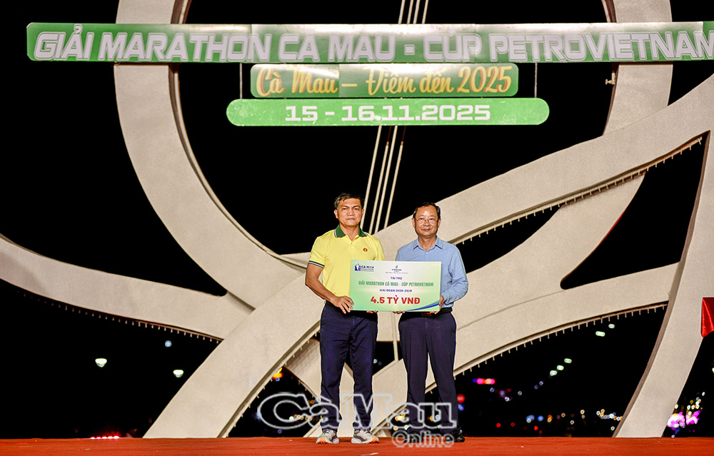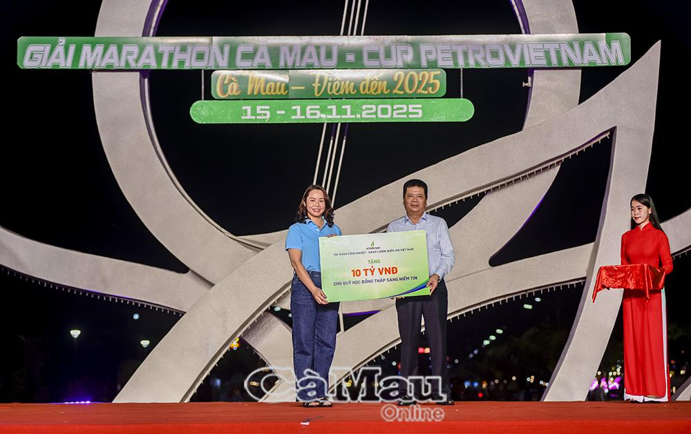 Tại buổi lễ, Tập đoàn Công nghiệp - Năng lượng Quốc gia Việt Nam cùng các đơn vị thành viên (Tổng Công ty Khí Việt Nam, Tổng Công ty Phân bón Dầu khí Cà Mau, Tổng Công ty Điện lực Dầu khí Việt Nam) đã trao bảng tài trợ Giải Marathon giai đoạn 2026-2028 cho tỉnh Cà Mau; đồng thời trao tặng 60 tỷ đồng cho Quỹ Học bổng “Thắp sáng niềm tin” nhằm hỗ trợ học sinh, sinh viên có hoàn cảnh khó khăn.