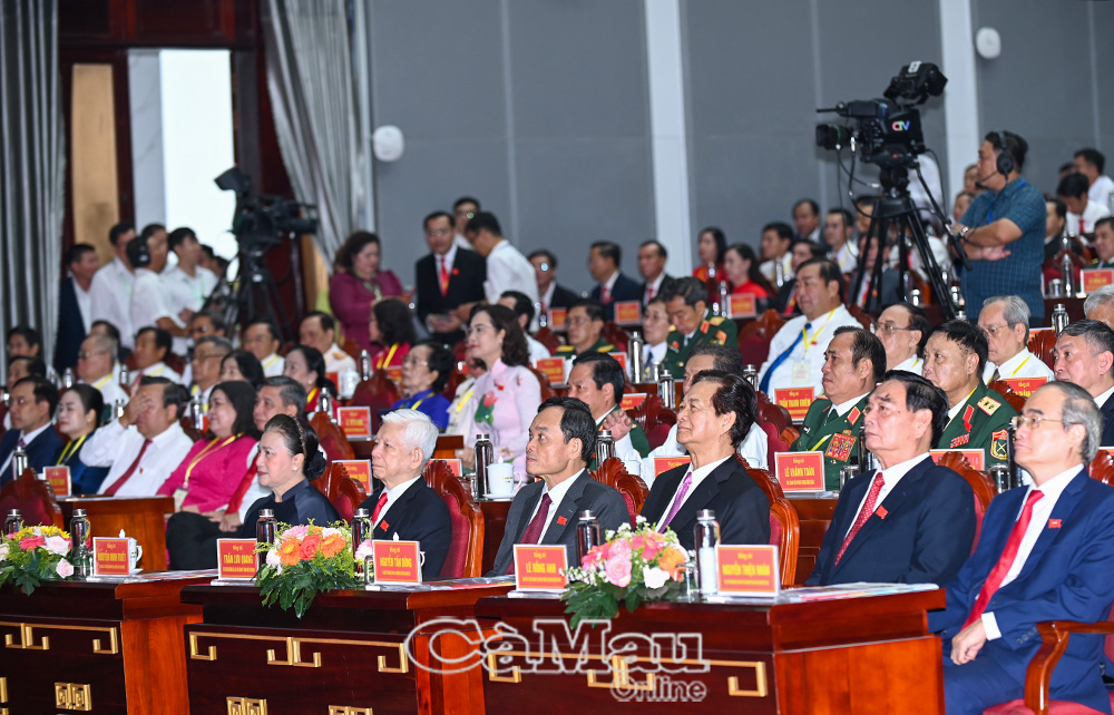 Sự hiện diện của các đồng chí lãnh đạo là nguồn động viên to lớn, thể hiện tình cảm, niềm tin và sự kỳ vọng đối với Đảng bộ, chính quyền và Nhân dân tỉnh Cà Mau. Ảnh: THANH MINH