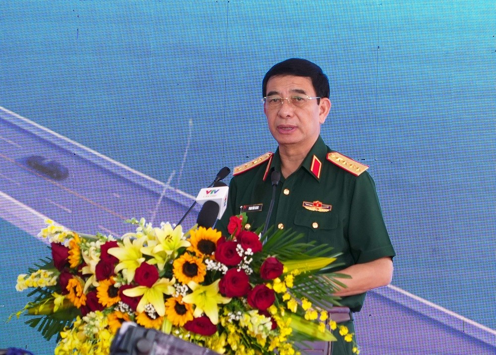 Đại tướng Phan Văn Giang, Ủy viên Bộ Chính trị, Bộ trưởng Bộ Quốc phòng phát biểu tại buổi lễ.