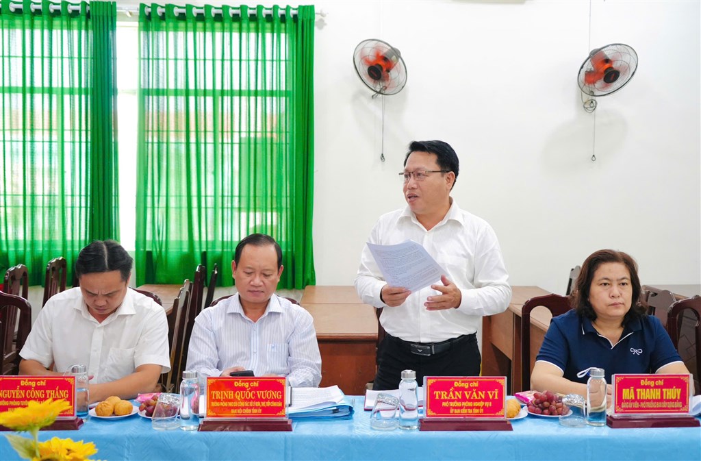 Phó Chủ tịch UBND tỉnh Nguyễn Minh Luân (người đứng) phát biểu tại buổi kiểm tra.