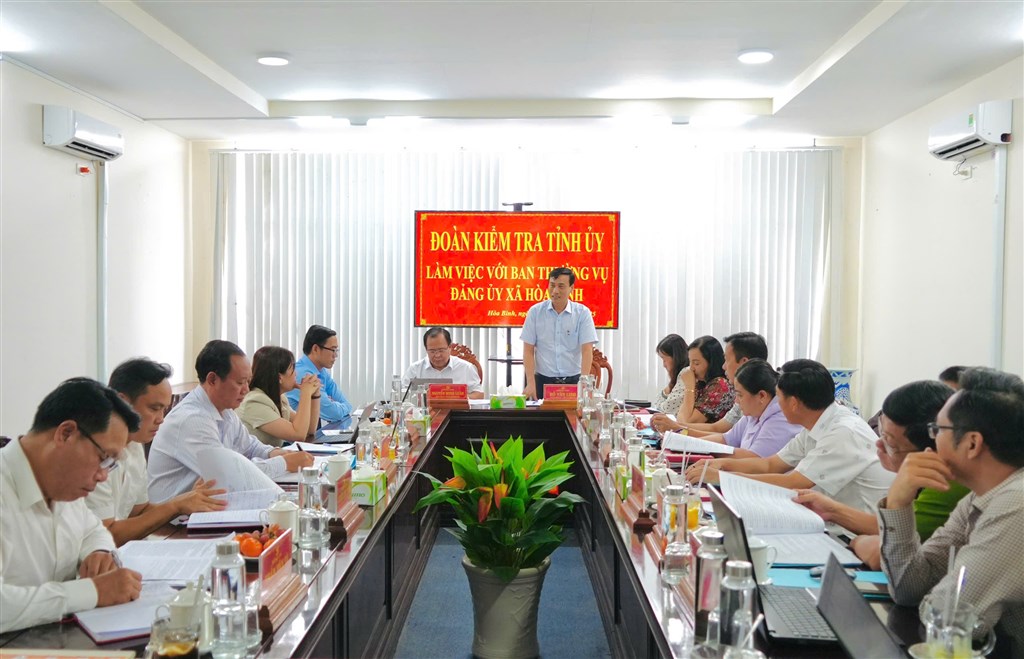 Đại biểu phát biểu tại buổi kiểm tra tại Đảng bộ xã Hòa Bình.