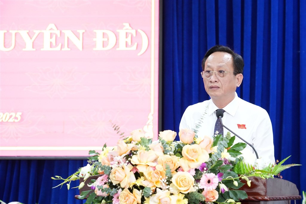 Phó Chủ tịch UBND tỉnh Lâm Văn Bi đã báo cáo công tác chỉ đạo, điều hành của UBND tỉnh giai đoạn 2021 - 2025. Nhiệm kỳ qua, UBND tỉnh thực hiện đầy đủ các quy định về phối hợp với HĐND tỉnh trong việc chuẩn bị nội dung, thực hiện chương trình các kỳ họp, phiên họp; trả lời đầy đủ các kiến nghị của cử tri; thực hiện nghiêm quy định về giám sát của HĐND tỉnh.