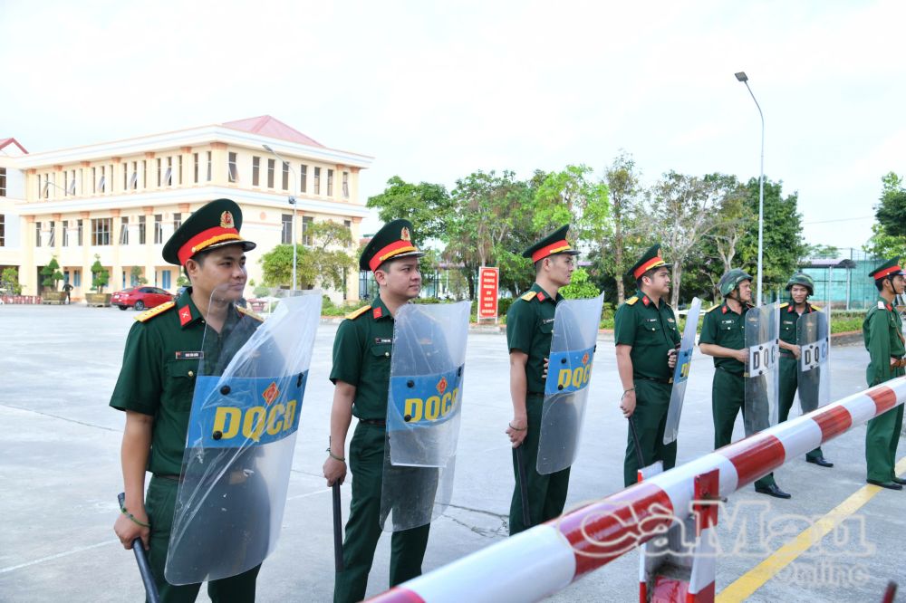 Cán bộ, chiến sĩ lực lượng vũ trang tỉnh Cà Mau luyện tập triển khai đội hình, quán triệt nhiệm vụ và hiệp đồng xử trí tình huống theo kế hoạch.