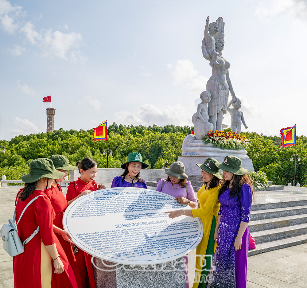 Du khách tham quan, trải nghiệm Tượng Mẹ tại Khu du lịch Đất Mũi.
