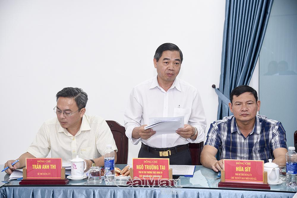 Đồng chí Ngô Trường Tại, Phó Bí thư Thường trực Đảng uỷ, Chủ tịch HĐND xã Vĩnh Lợi báo cáo kết quả vận hành chính quyền địa phương 2 cấp.