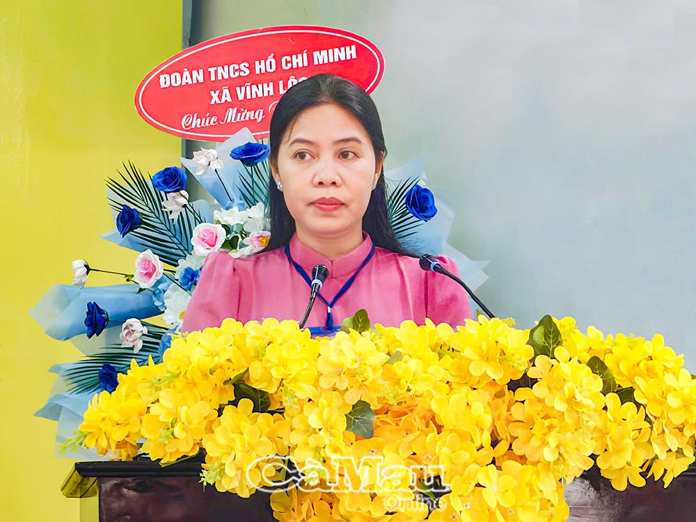 Phát biểu chỉ đạo tại đại hội, đồng chí Tô Thị Mỹ Thuận biểu dương những kết quả nổi bật của Hội LHPN xã Vĩnh Lộc trong nhiệm kỳ qua, thể hiện sự chuyển biến tích cực, toàn diện trên các lĩnh vực. Đồng chí đề nghị Hội LHPN xã tiếp tục phát huy vai trò trong xây dựng Đảng, xây dựng chính quyền, củng cố tổ chức Hội vững mạnh, hỗ trợ phụ nữ phát triển kinh tế, xây dựng gia đình an toàn, hạnh phúc.