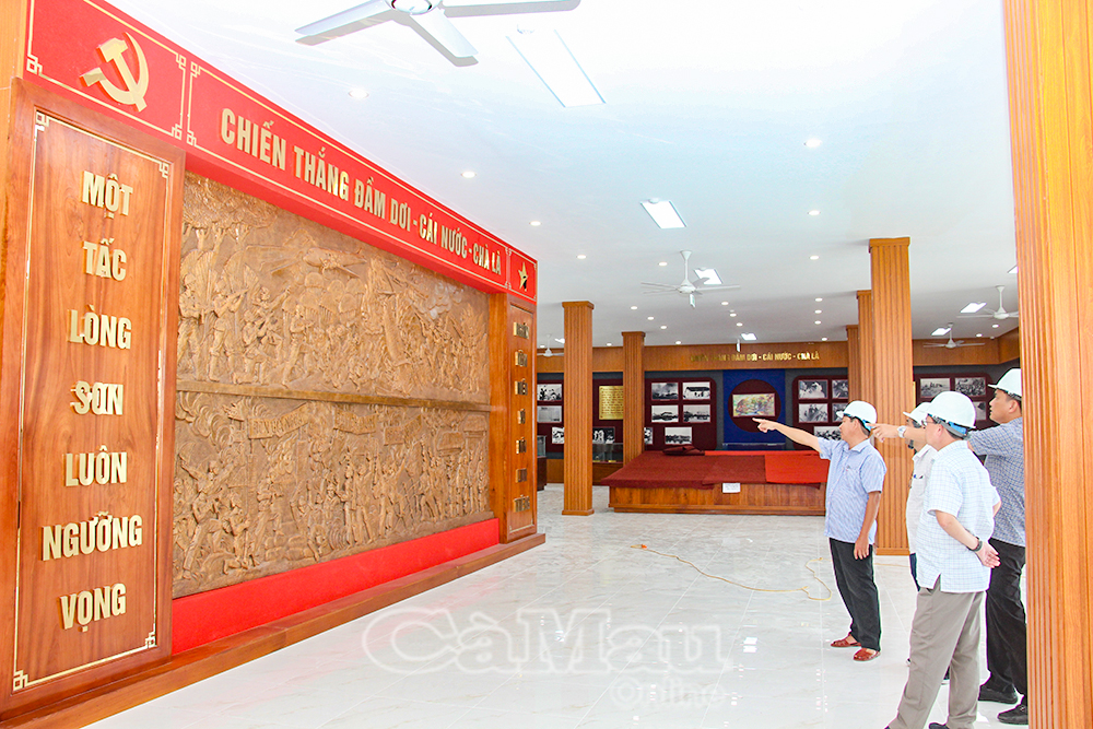 Ban Giám đốc Ban Quản lý dự án công trình xây dựng tỉnh Cà Mau kiểm tra Nhà trưng bày trong Khu di tích Chiến thắng Đầm Dơi - Cái Nước - Chà Là.