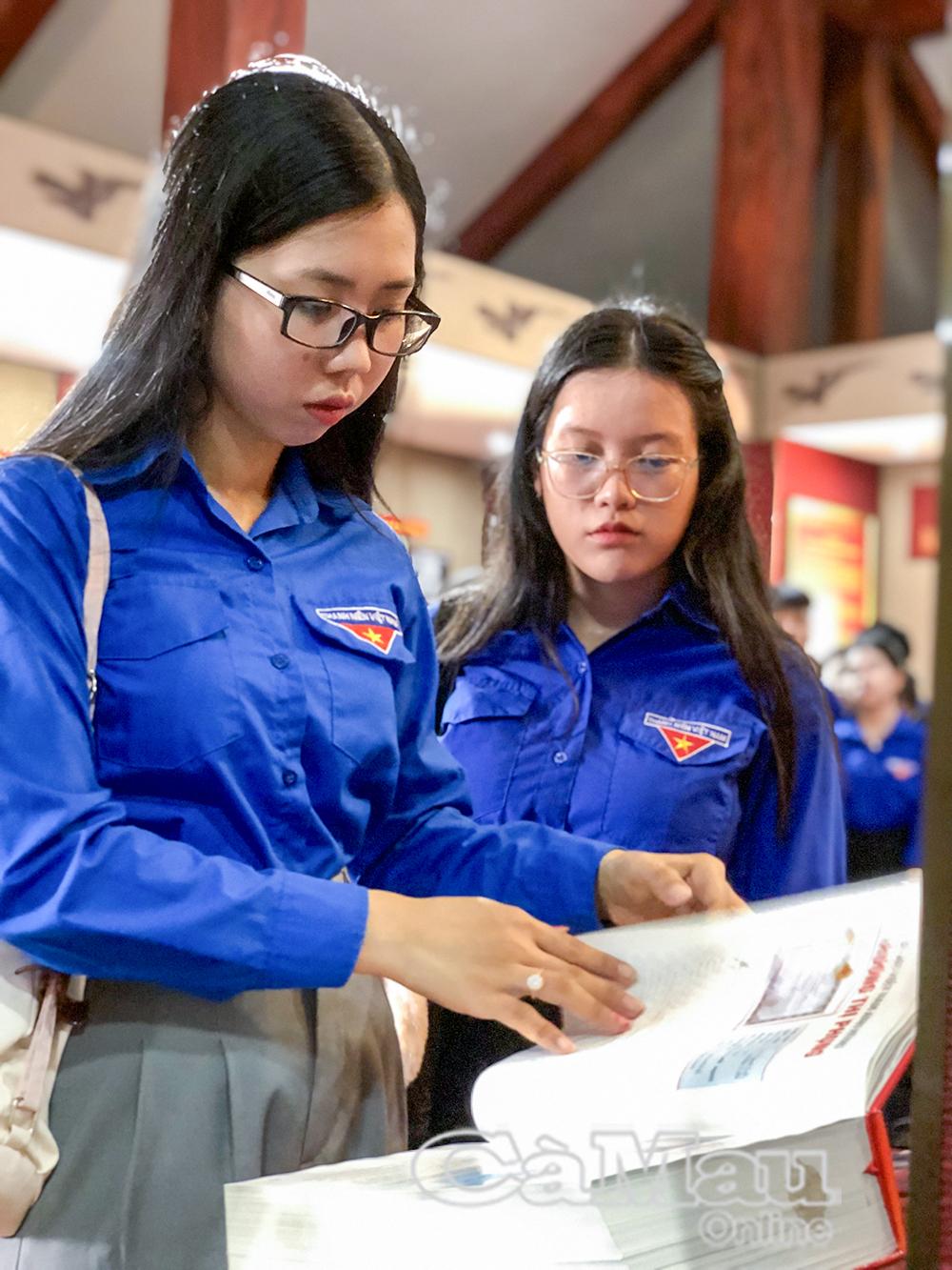 Học sinh tìm hiểu về các Bà mẹ Việt Nam anh hùng qua những cuốn sách được trưng bày trang trọng tại di tích.
