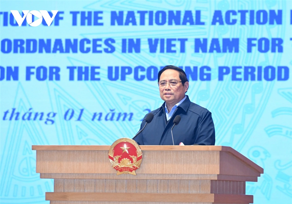 Phát biểu tại hội nghị, Thủ tướng chính phủ Phạm Minh Chính ghi nhận và biểu dương kết quả mà các cấp, các ngành có liên quan đã đạt được trong rà phá bom mìn, vật nổ thời gian qua; cảm ơn Chính phủ các tổ chức quốc tế đã giúp Việt Nam khắc phục hậu quả chiến tranh.