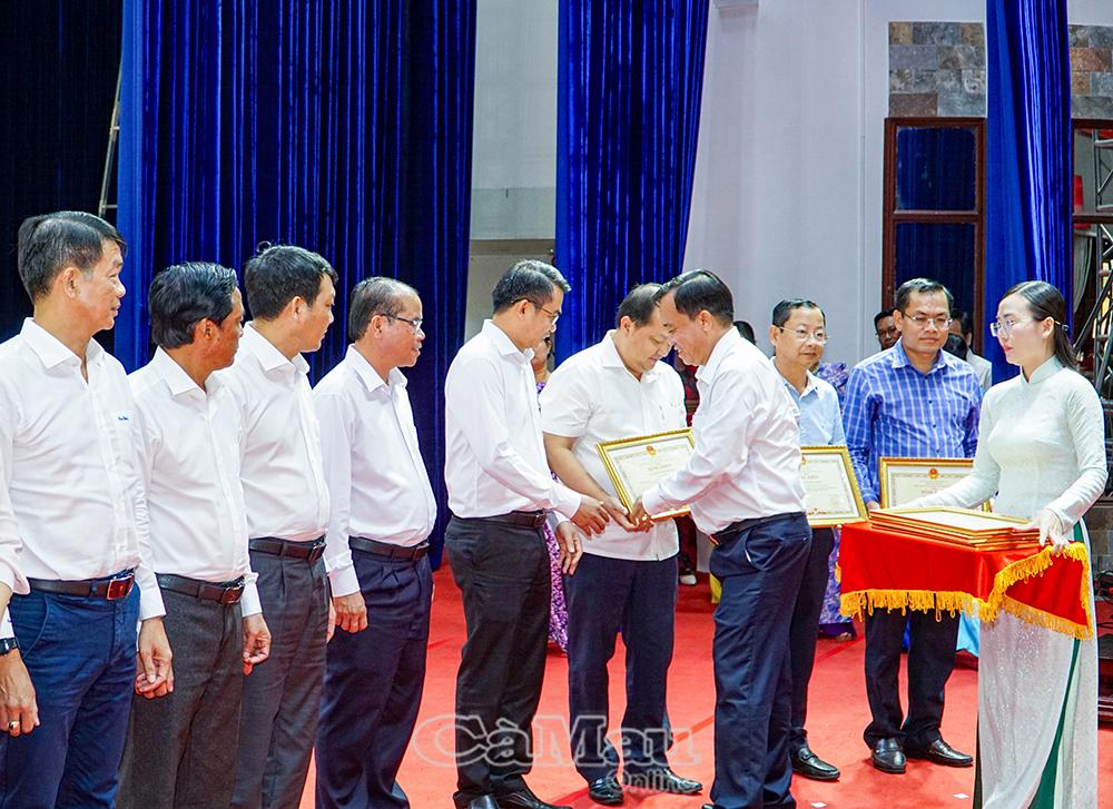 Phó Bí thư Tỉnh uỷ, Chủ tịch UBND tỉnh Phạm Thành Ngại trao bằng khen của Chủ tịch UBND tỉnh cho các cá nhân có thành tích xuất sắc đóng góp vào thành công Đại hội.