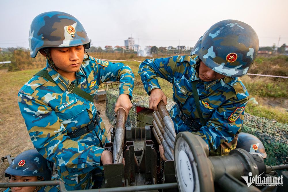 Dưới cái nắng chiều đang nhạt dần, những khuôn mặt trẻ măng bỗng chốc trở nên nghiêm nghị. Các chiến sĩ tập trung cao độ, thoăn thoắt leo lên bệ pháo, xoay vô lăng hiệu chỉnh tầm hướng với đôi tay gân guốc. Tất cả tạo nên một khung cảnh hừng hực khí thế ngay từ giây phút đầu nhập cuộc.