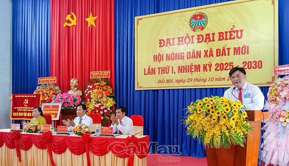 Phát biểu chỉ đạo, đồng chí Nguyễn Hoàng Thoại, Phó Chủ tịch Uỷ ban MTTQ tỉnh, Chủ tịch Hội Nông dân tỉnh, biểu dương những kết quả đạt được của Hội Nông dân xã Đất Mới, đồng thời nhấn mạnh: Thời gian tới, Hội cần tiếp tục củng cố, xây dựng tổ chức vững mạnh, phát huy vai trò trung tâm, nòng cốt của nông dân trong phát triển nông nghiệp, nông thôn. Hội cần vận động hội viên chuyển đổi mô hình sản xuất theo hướng nông nghiệp sinh thái, hữu cơ, công nghệ cao, khuyến khích liên kết theo chuỗi giá trị; đổi mới các phong trào thi đua yêu nước, xây dựng nông thôn sáng - xanh - sạch - đẹp, văn minh, an toàn, đẩy mạnh ứng dụng công nghệ số, thương mại điện tử trong sản xuất và tiêu thụ nông sản.
