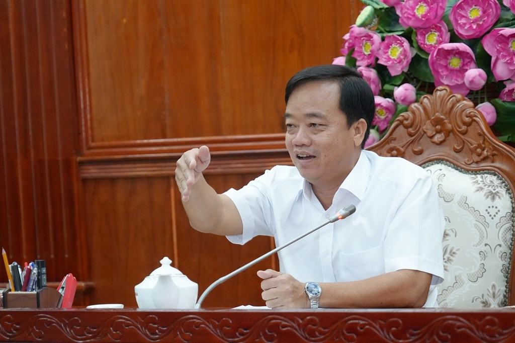 Phó Bí thư Thường Trực Tỉnh ủy Huỳnh Quốc Việt phát biểu tại cuộc họp.