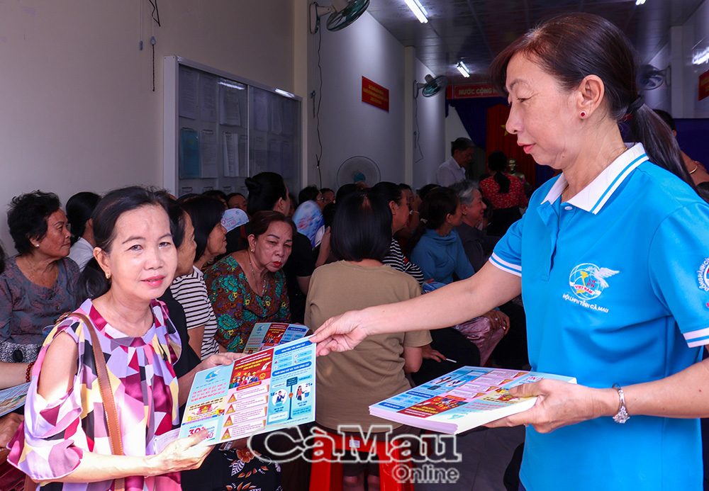 Hội LHPN phường An Xuyên phát tờ rơi tuyên truyền về quy trình bầu cử cho hội viên Khóm 4.