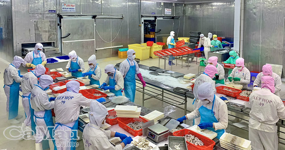 Chế biến, xuất khẩu tôm được xác định là mũi nhọn kinh tế. (Ảnh: Hữu Thọ)