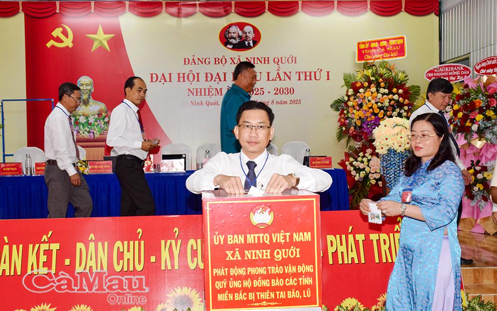 Đại hội công bố quyết định của Ban Thường vụ Tỉnh uỷ chỉ định 26 đồng chí tham gia Ban Chấp hành Đảng bộ xã, nhiệm kỳ 2025-2030; 9 đồng chí tham gia Ban Thường vụ; đồng chí Nguyễn Minh Nhựt được chỉ định giữ chức Bí thư Đảng uỷ xã Ninh Quới, nhiệm kỳ 2025-2030.