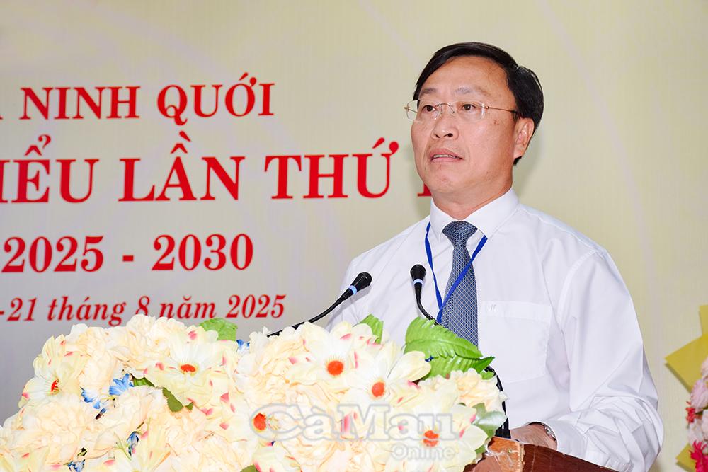 Phó Chủ tịch UBND tỉnh Cà Mau đề nghị xã Ninh Quới cần nhận diện đúng vị thế mới của xã khi không gian đã mở rộng, xác định rõ tiềm năng, thế mạnh, từ đó xây dựng kế hoạch triển khai thực hiện Nghị quyết Đại hội đề ra.