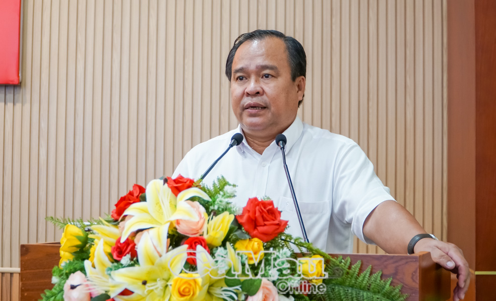 Đồng chí Huỳnh Quốc Việt, Uỷ viên Dự khuyết Ban Chấp hành Trung ương Đảng, Phó Bí thư Thường trực Tỉnh uỷ, trình bày chuyên đề: "Đánh giá nhiệm kỳ 2020-2025; tiềm năng, lợi thế, thuận lợi, khó khăn, cơ hội, thách thức của tỉnh Cà Mau trong nhiệm kỳ 2020-2025.