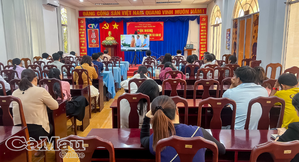 Cán bộ, đảng viên, viên chức, người lao động Báo và phát thanh, truyền hình Cà Mau dự học tập, quán triệt Nghị quyết, tại điểm cầu trực tuyến đơn vị. Ảnh: Trúc Linh