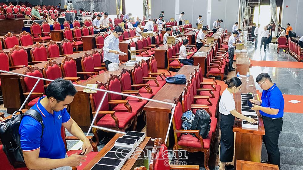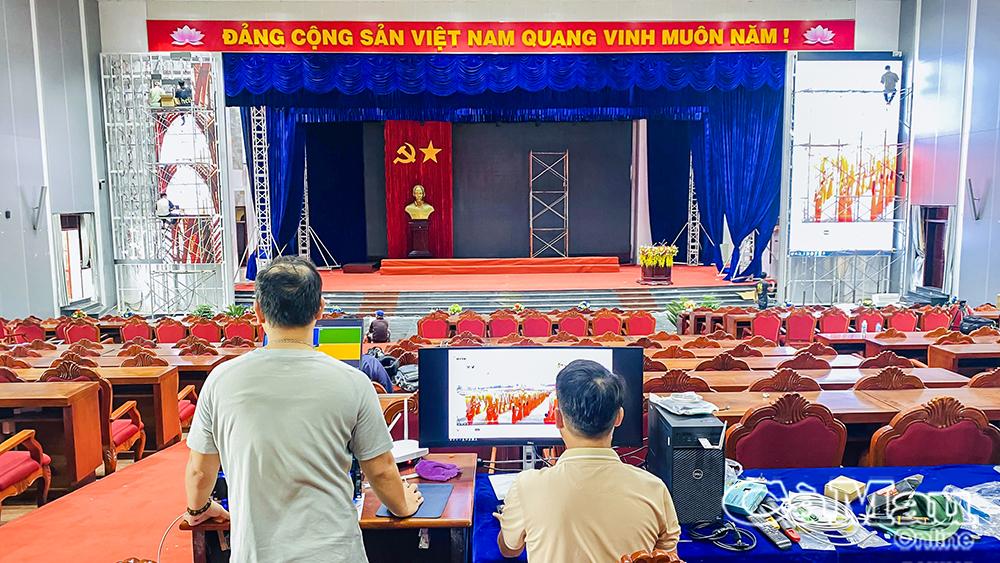 Ghi nhận tại Trung tâm Hội nghị tỉnh Cà Mau, nơi diễn ra Đại hội, các đơn vị đang khẩn trương hoàn thiện công tác trang trí, khánh tiết, lắp đặt hệ thống âm thanh, ánh sáng và hạ tầng kỹ thuật phục vụ chương trình.