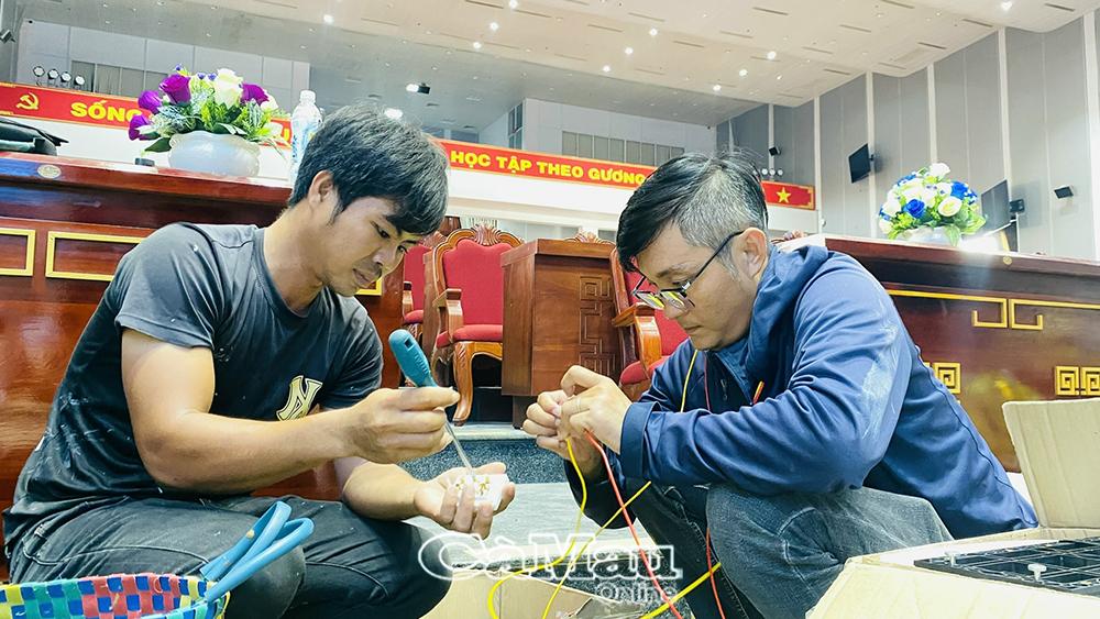 Lực lượng kỹ thuật đang tích cực cài đặt phần mềm phục vụ đại hội.