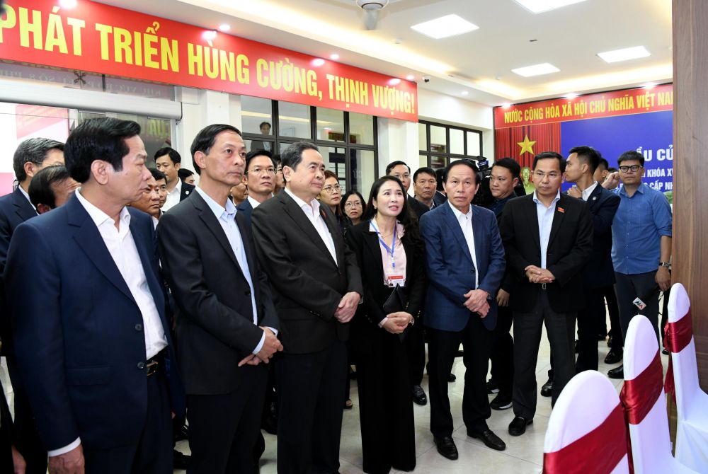 Chủ tịch Quốc hội, Chủ tịch Hội đồng Bầu cử quốc gia Trần Thanh Mẫn và Đoàn công tác khảo sát thực tế tại điểm bầu cử phường Ninh Kiều, TP. Cần Thơ. Ảnh: Lâm Hiển