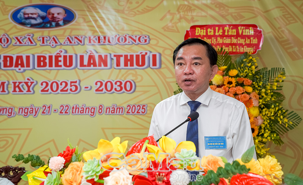 Phát biểu chỉ đạo Đại hội, đồng chí Phan Thanh Duy, Uỷ viên Ban Thường vụ Tỉnh uỷ, Chủ nhiệm Uỷ ban Kiểm tra Tỉnh uỷ đánh giá cao những kết quả Đảng bộ xã Tạ An Khương đạt được trong nhiệm kỳ qua, đồng thời nhấn mạnh: Đảng bộ xã Tạ An Khương cần nhanh chóng ổn định tổ chức, xây dựng khối đoàn kết thống nhất, tạo sự đồng thuận cao trong xã hội. Tập trung triển khai ngay các nhiệm vụ trọng tâm theo tinh thần “rõ người, rõ việc, rõ trách nhiệm, rõ kết quả, rõ thời hạn, rõ lộ trình”, khai thác tối đa tiềm năng về thuỷ sản, thương mại – dịch vụ để phát triển kinh tế bền vững, gắn với an sinh xã hội và giảm nghèo.