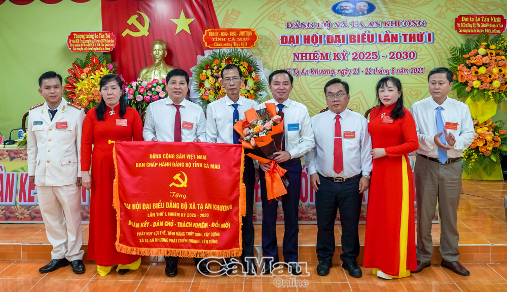 Thay mặt BCH Đảng bộ tỉnh, đồng chí Phan Thanh Duy, Uỷ viên Ban Thường vụ Tỉnh uỷ, Chủ nhiệm Uỷ ban Kiểm tra Tỉnh uỷ tặng bức trướng chúc mừng Đại hội với dòng chữ: Đoàn kết – Dân chủ - Trách nhiệm – Đổi mới, phát huy lợi thế, tiềm năng thuỷ sản xây dựng xã Tạ An Khương phát triển nhanh, bền vững.