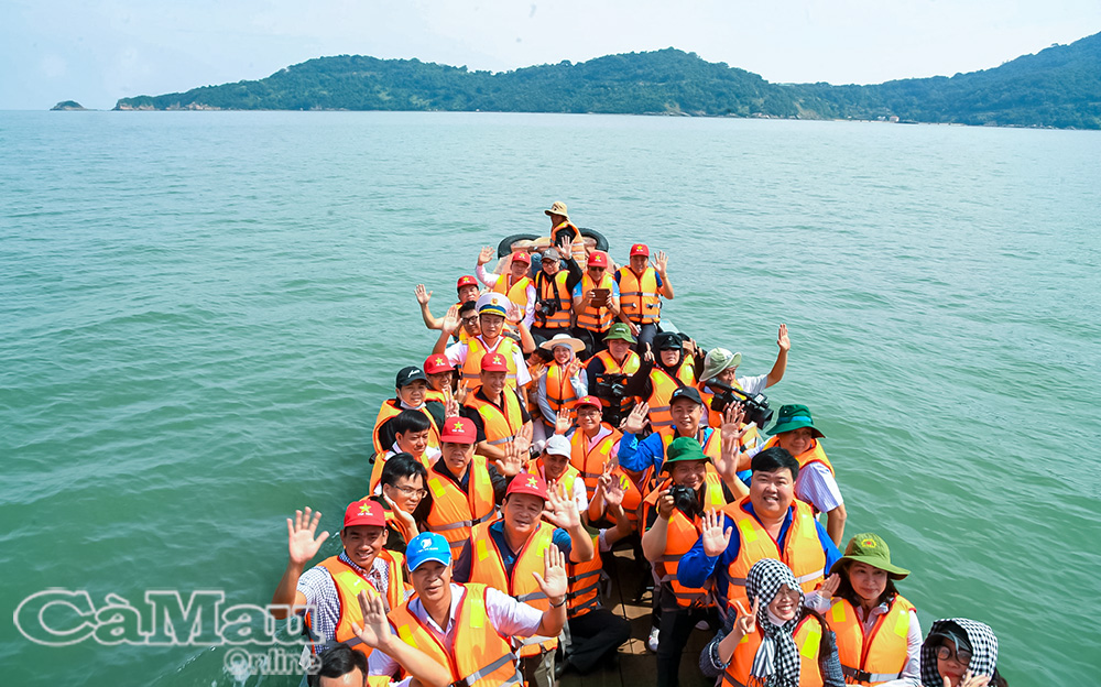 Đoàn công tác của Bộ Tư lệnh Vùng 5 Hải quân và đại diện các đơn vị, địa phương trong hành trình đến với biển, đảo tiền tiêu Tây Nam của Tổ quốc.