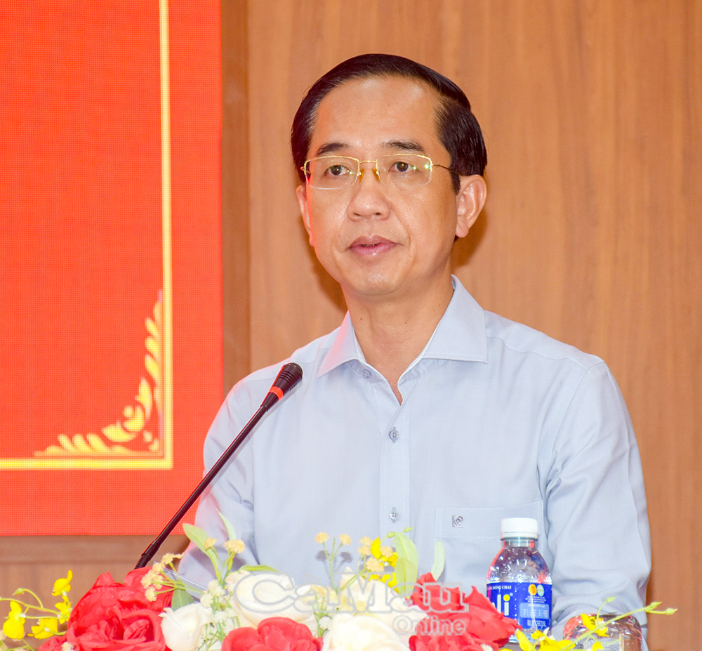 Thay mặt các ứng cử viên, đồng chí Hồ Thanh Thuỷ, Phó Bí thư Tỉnh uỷ, Chủ tịch Uỷ ban MTTQ Việt Nam tỉnh Cà Mau, phát biểu tại hội nghị.